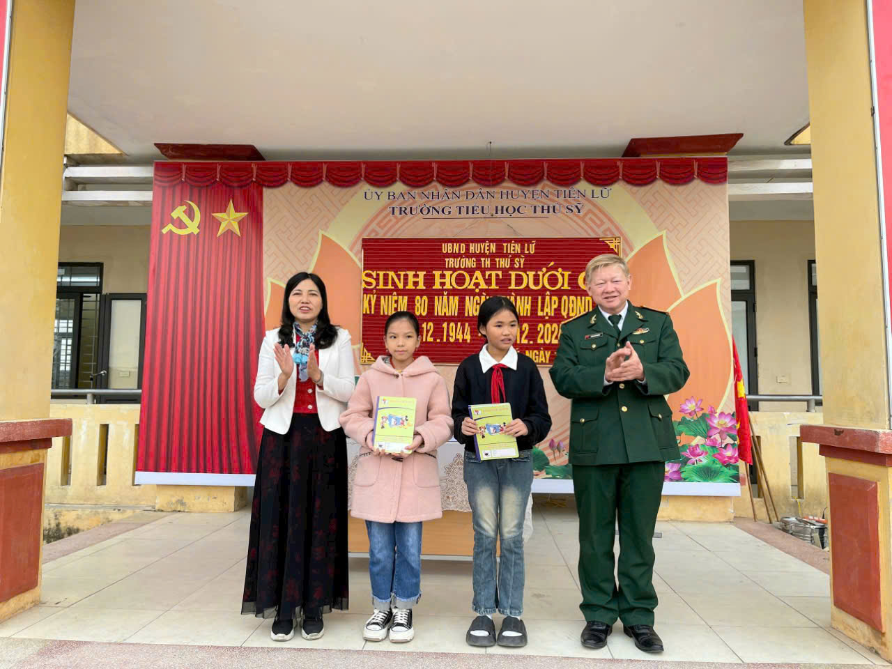 Đặc biệt, nhằm ôn lại lịch sử và ý nghĩa ngày thành lập Quân đội nhân dân Việt Nam 22/12, sáng ngày 16/12/2024, nhà trường đã tổ chức sinh hoạt dưới cờ chủ điểm “Uống nước nhớ nguồn”. Đến dự buổi sinh hoạt có Hội Cựu chiến binh xã Thủ Sỹ, BGH nhà trường, các thầy cô giáo và học sinh. Mở đầu là các tiết mục văn nghệ chào mừng do các em học sinh biểu diễn; những lời ca, tiếng hát vang lên thể hiện sự ngưỡng mộ, niềm tự hào của thế hệ trẻ với các thế hệ cha anh đi trước đã không tiếc máu xương để đem lại nền độc lập cho dân tộc.