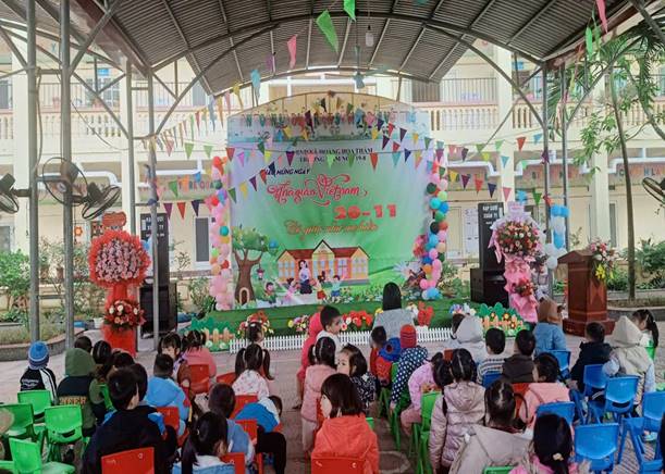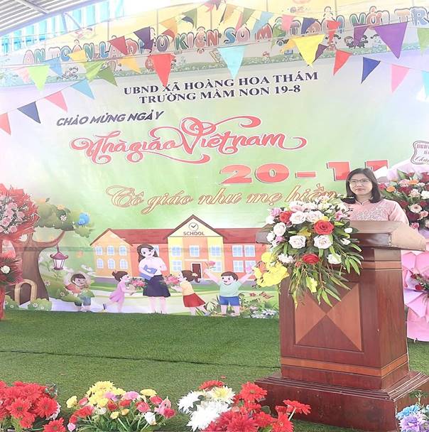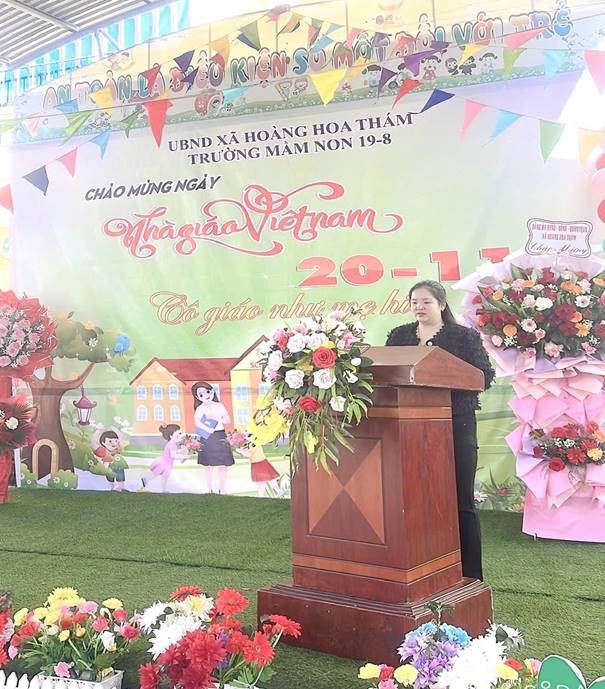 Tại buổi kỉ niệm, đồng chí Nguyễn Thị Hà- Bí thư chi bộ, hiệu trưởng nhà trường đã gửi những lời chúc mừng tốt đẹp nhất đến toàn thể đội ngũ giáo viên; Ôn lại truyền thống 20-11 đồng thời biểu dương những cô giáo có thành tích nổi bật trong năm học vừa qua. Đây là nguồn động viên to lớn để các cô tiếp tục nỗ lực, sáng tạo và tận tâm hơn nữa trong công tác giáo dục trẻ.