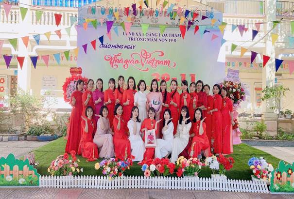 (Tập thể cán bộ giáo viên, nhân viên trường mầm non 19-8 chụp ảnh lưu niệm)